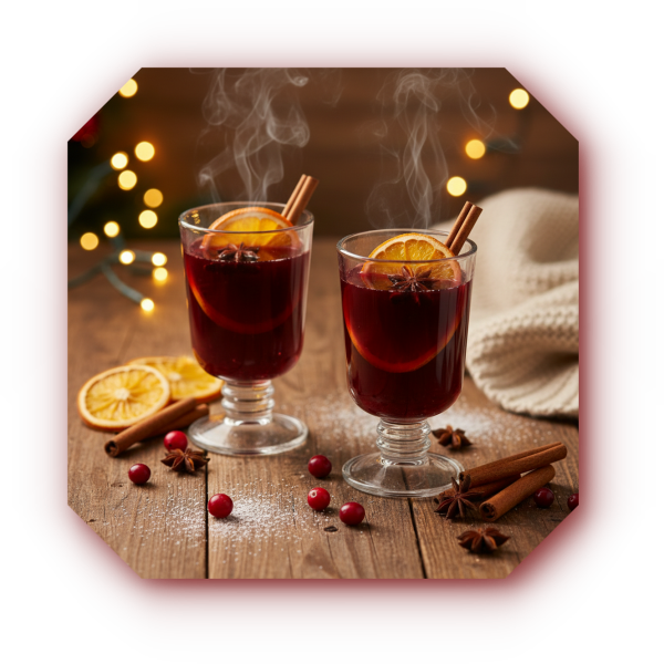 크리스마스 파티 분위기를 한껏 올려줄 특별한 음료도 필요하겠죠? 와인에 과일과 시나몬을 넣고 따뜻하게 끓인 뱅쇼(Vin Chaud)는 추운 겨울에 몸을 녹여주는 최고의 음료예요. 알코올이 날아가서 은은하게 즐기기 좋답니다.